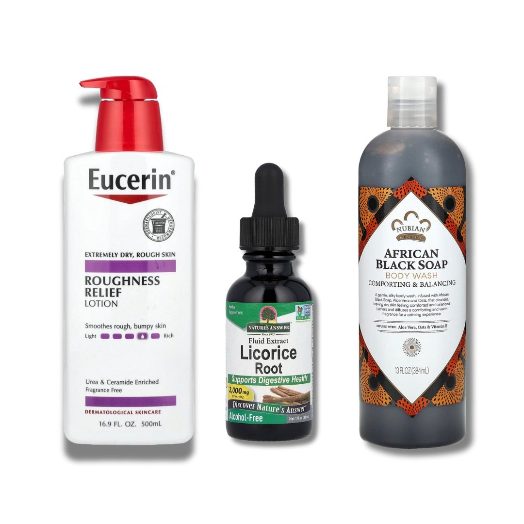 تقلل قطرات مستخلص عرق السوس من احمرار وتهيج البشرة وترطبها وتحميها من الجفاف، وتفتح وتوحد لون البشرة، ويمكن استخدامها كمكمل غذائي لأنها تعزز من صحة جهاز المناعة.