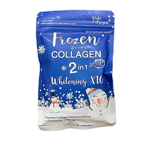 كبسولات فروزن كولاجين للتبيض 60 كبسولة frozen collagen capsule مصنوع من الجلوتاثيون، وهو إنزيم طبيعي يقلل من الميلانين الذي تنتجه البشرة. بالإضافة إلى ذلك، تحتوي الكبسولات على مكونات أخرى تعالج البشرة وتنظفها، مثل: الجلوتاثيون والكولاجين البحري وفيتامين C وفيتامين E