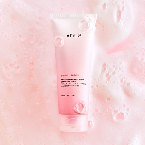 | Anua Peach Niacin Spread Cleansing Foam | خلاصة الخوخ + نياسيناميد | تنظيف + تفتيح + إشراقة | رغوة ناعمة وخفيفة | بشرة أكثر نعومة وإشراقًا |
