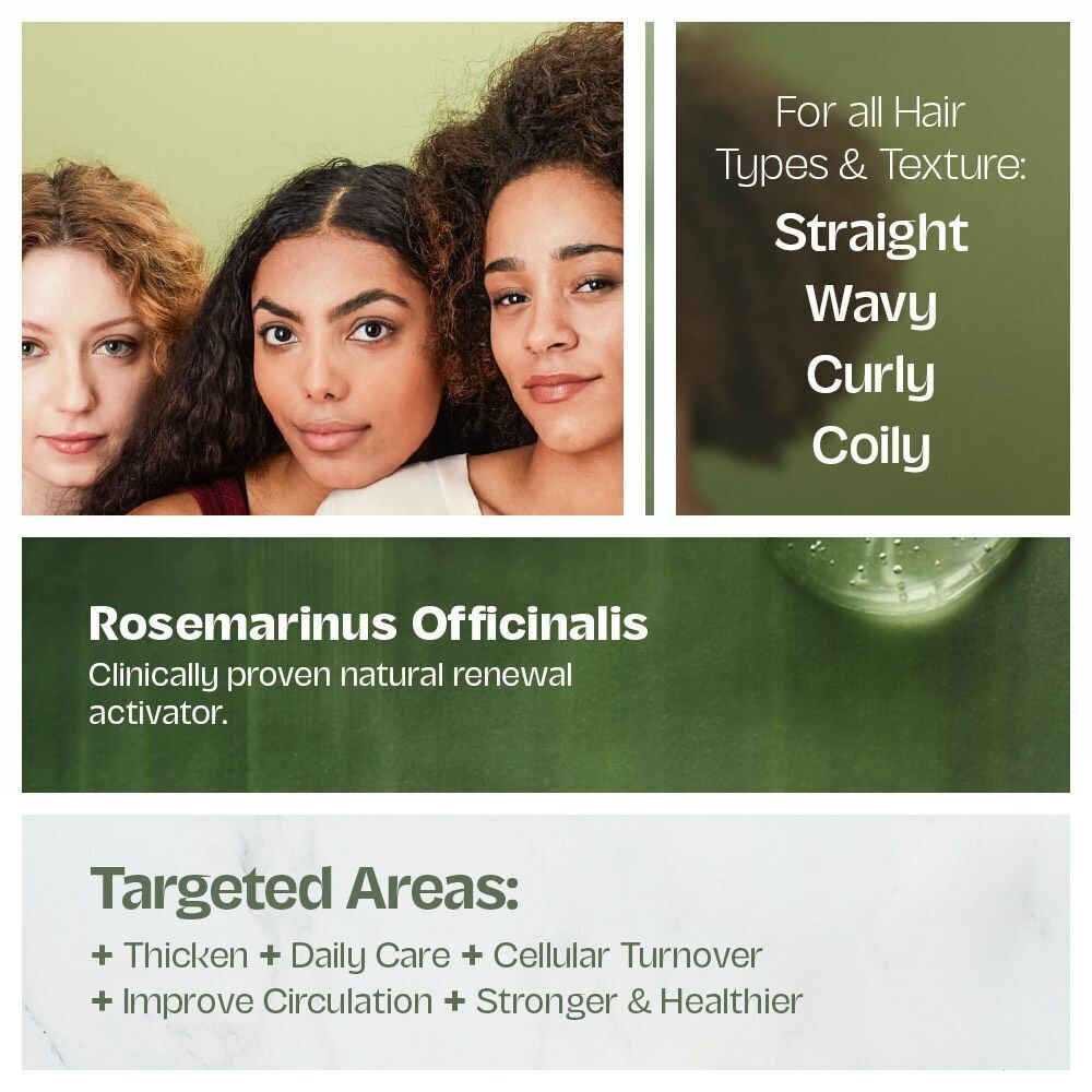 - تحفيز النمو: يعمل مزيج إكليل الجبل على تنشيط بصيلات الشعر، مما يشجع نمو الشعر الطبيعي.