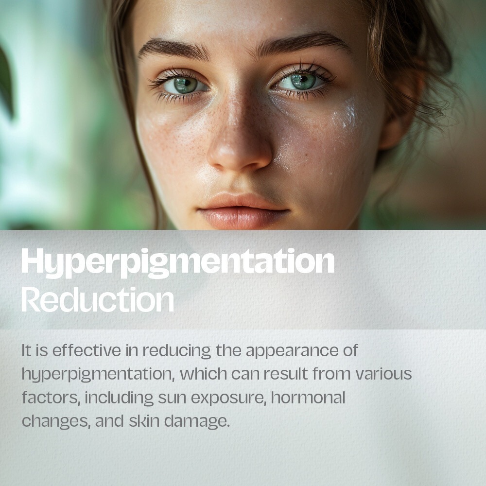 يعزز تفتيح البشرة ويقلل من فرط التصبغ بسبب التعرض للشمس والتغيرات الهرمونية، مما يحسن ملمسها ويمنحها مظهرًا أكثر إشراقًا وشبابًا. يعد بديلاً آمنا للهيدروكينون، مع فوائد مضادة للشيخوخة لبعض المنتجات ويُعتبر مناسبًا للاستخدام المستمر.