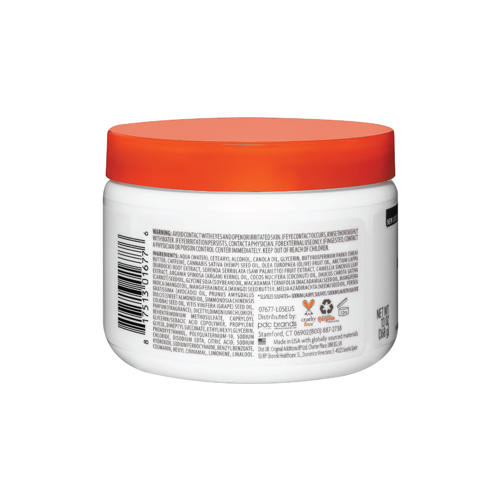 مزيجنا الفريد من الكافيين وزيت بذور القنب وزبدة الشيا يرطب بعمق للمساعدة في منع وإصلاح الشعر الجاف والهش