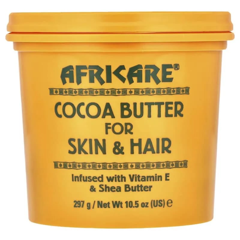 زبدة الكاكاو افريكير هي زبدة ترطيب مزودة بفيتامين هـ وزبدة الشيا لترطيب مثالي للشعر والبشرة. تعمل هذه الزبدة على إصلاح البشرة الجافة والتالفة.