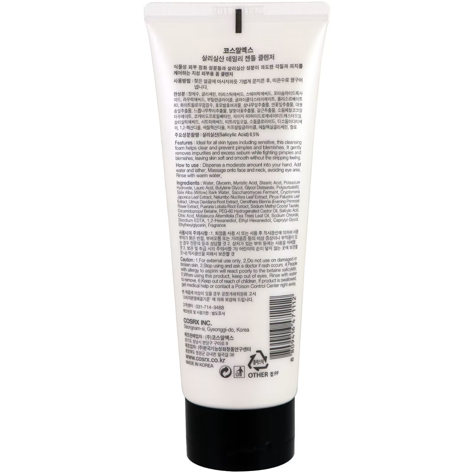 غسول بحمض السالسيليك كوزركس COSRX Salicylic Acid Daily Gentle Cleanser