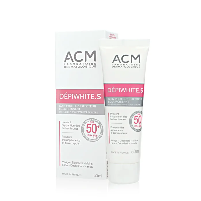 | ACM Dépiwhite S | غير ملوّن | تفتيح + حماية SPF50 لليدين والوجه | مثالي لمن تريد تفتيح فعلي بدون لون |