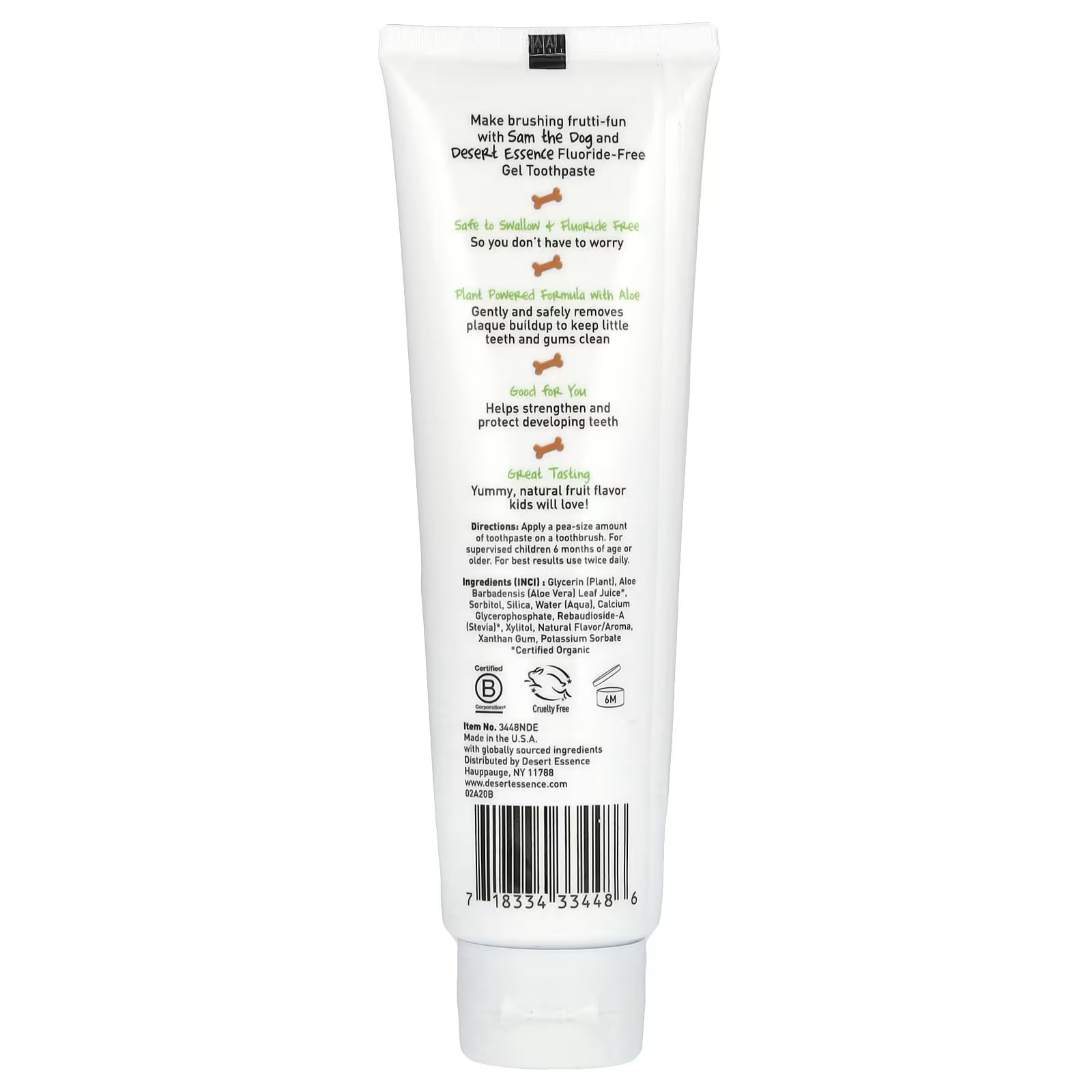 اجعل تنظيف الأسنان بالفرشاة أمرًا ممتعًا مع Sam the Dog ومعجون الأسنان الجل الخالي من الفلورايد من Desert Essence.