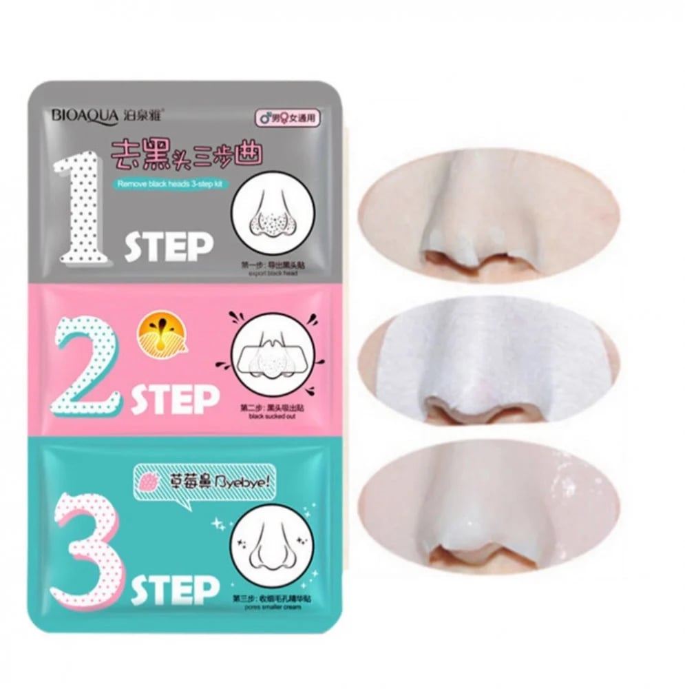 Holika Holika لصقات الانف لازالة الرؤوس السوداء هو علاج ثلاثي المراحل مصمم خصيصًا لإزالة الرؤوس السوداء والشوائب من الأنف بفعالية. يحتوي هذا الكيت على ثلاثة شرائط، كل منها يقوم بوظيفة معينة: الأول لفتح المسام وتنعيم البشرة، الثاني لإزالة الرؤوس السوداء بعمق، والثالث لتهدئة البشرة وإغلاق المسام. يساعد هذا العلاج على تنظيف الأنف بفعالية ويمنح البشرة مظهرًا نقيًا وناعمًا.