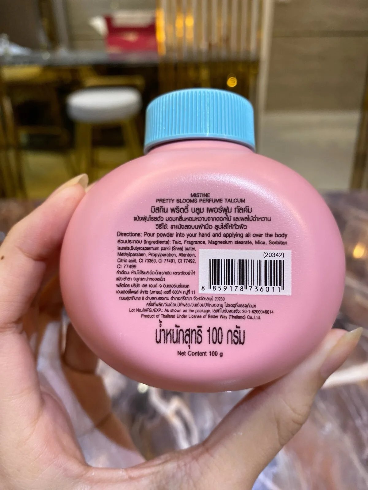 بودرة معطرة للجسم ميستين بريتي بلومز برائحة الزهور والفواكه اللذيذة 100جم Mistine Pretty Blooms Perfume Talcum