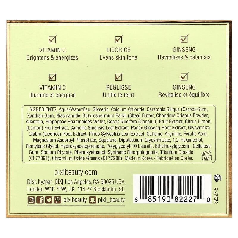 تنشط منطقة تحت العينين وتعيد إليها حيويتها وتنعشها. تحتوي على فيتامين ج وعرق السوس والجينسينغ لإعادة الحيوية للمنطقة تحت العينين وتقليل الاسمرار تحت العينين.