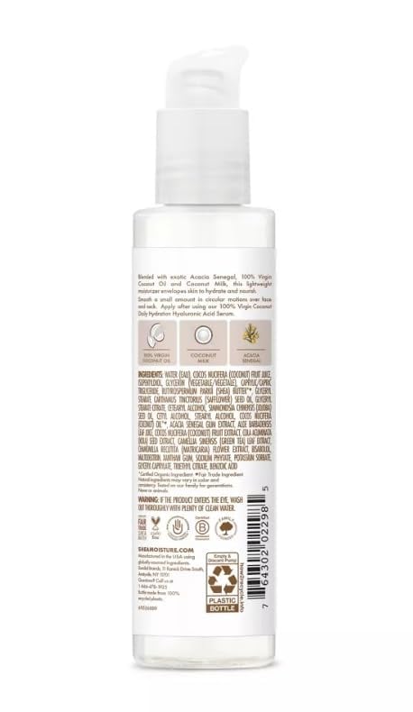 - لوشن مرطب الوجه اليومي بزيت جوز الهند البكر بنسبة 100% من شيا مويستشر تعمل زبدة الشيا على ترطيب البشرة بعمق مع الفيتامينات والأحماض الدهنية الأساسية.