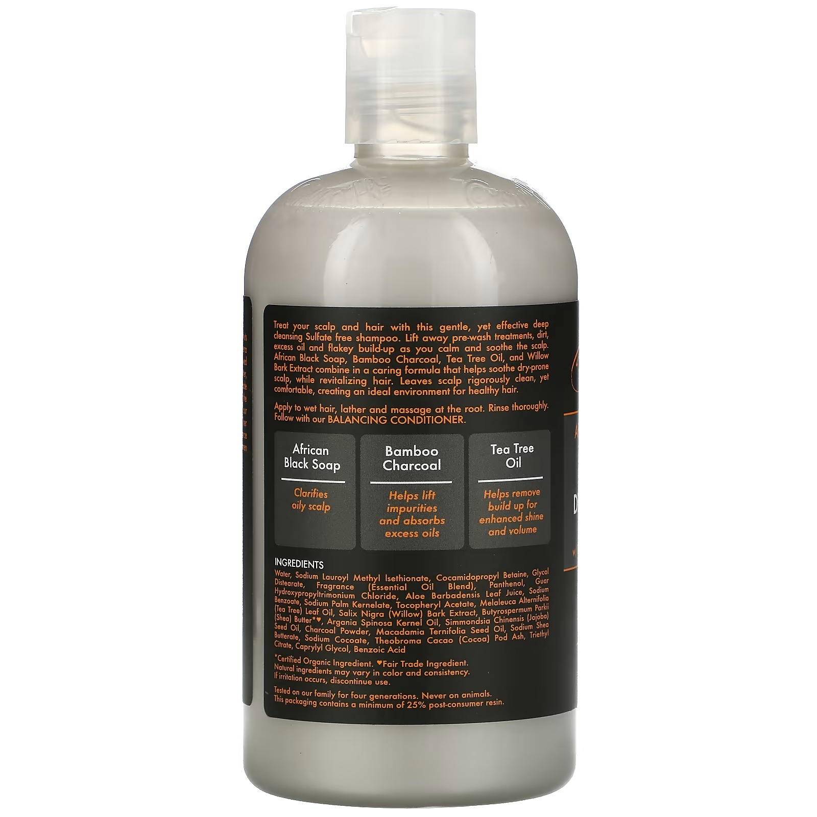 يحتوي على الصابون الأسود الأفريقي وفحم الخيزران وزيت شجرة الشاي ومستخلص لحاء الصفصاف.