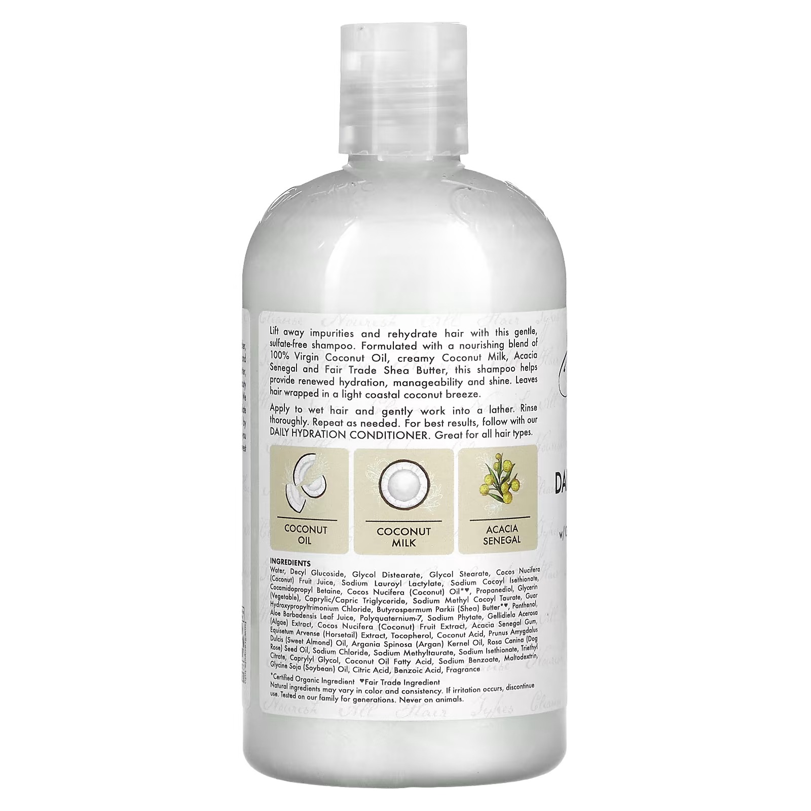 يتكون الشامبو من مزيج مغذي من زيوت جوز الهند والشيا بنسبة 100٪.