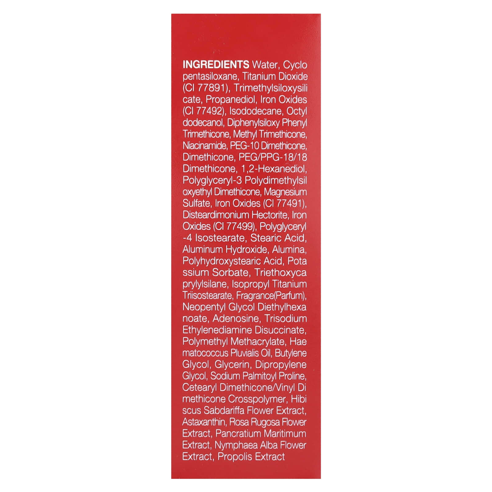يوفر تغطية عالية لتغطية العيوب والاحمرار للحصول على بشرة مثالية تدوم لمدة 72 ساعة. يتكون من مستخلص زهرة الكركديه سابداريفا ومستخلص البروبوليس والأستازانتين لتغذية البشرة والحفاظ على مكياجك الأساسي في مكانه. تعمل المكونات الحمراء المضادة للأكسدة على تغذية البشرة وتنعيمها، كما توفر الزهور المائية ترطيبًا عميقًا وحيوية للحصول على مظهر زجاجي مشرق. تركيبة مقاومة للعرق والتحول وزيادة مع مكونات مرطبة وصديقة للبشرة.