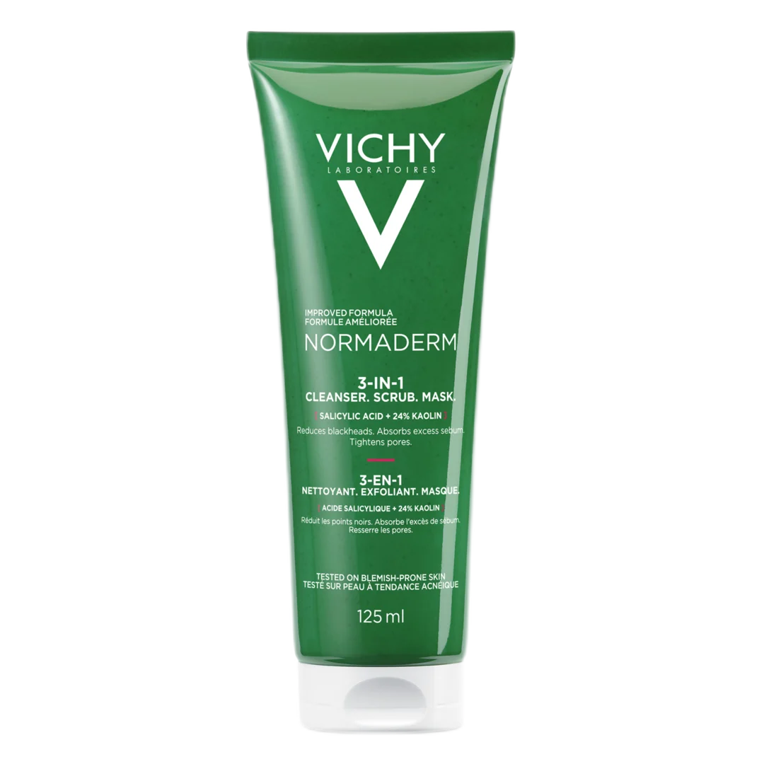 فيشي نورماديرم 3 في 1 غسول ومقشر وماسك للبشرة الدهنية وحب الشباب 125مل Vichy Normaderm 3-In-1 Cleanser Scrub Mask